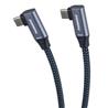 PremiumCord USB-C 2x zahnutý 90° kabel ( USB 3.2 GEN 2x2, 5A, 100W, 20Gbit/s ) hliníkové krytky konektorů, bavlněný oplet, 1m